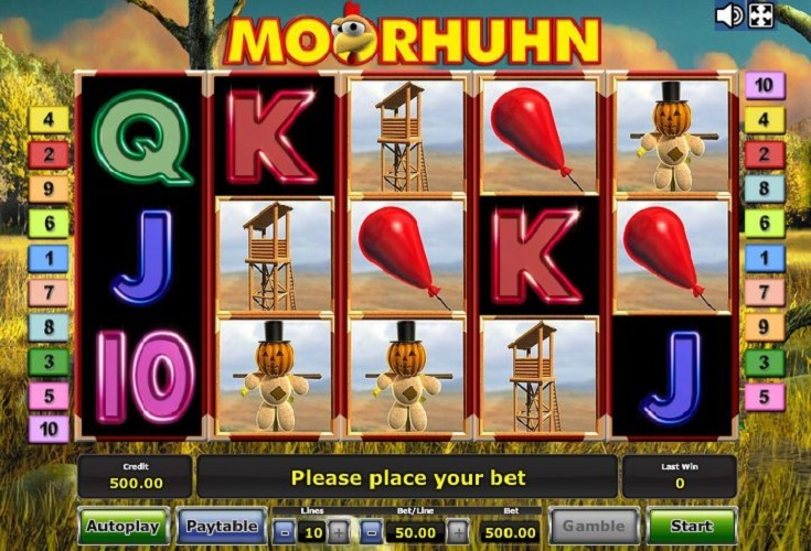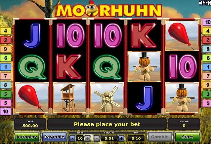 Freunde des lustigen Huhns dürfen Moorhuhn kostenlos spielen, um den hohen Unterhaltungswert ohne Risiken zu genießen. In Online Casinos ist auch der Echtgeld Modus möglich, um sich die Chance auf echte Gewinne offen zu halten. Bekannte Symbole wie die Vogelscheuche, Windmühlen und natürlich das Moorhuhn selbst rollen über die fünf Walzen in drei Reihen und sorgen durch zahlreiche Animationen für Action und Lacher! Außerdem dürfen die altbekannten Kartenzeichen auch bei diesem Slot nicht fehlen.
